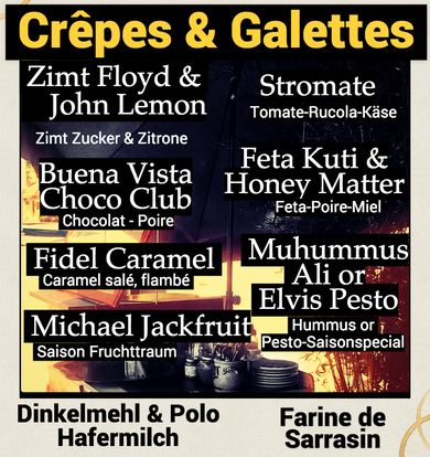 Veranstaltet ihr ein Fest? Gerne Rollen wir mit dem Crêpes-Velo zu euch um eure Gäste herzhaft zu verköstigen und den Anlass zu versüssen!