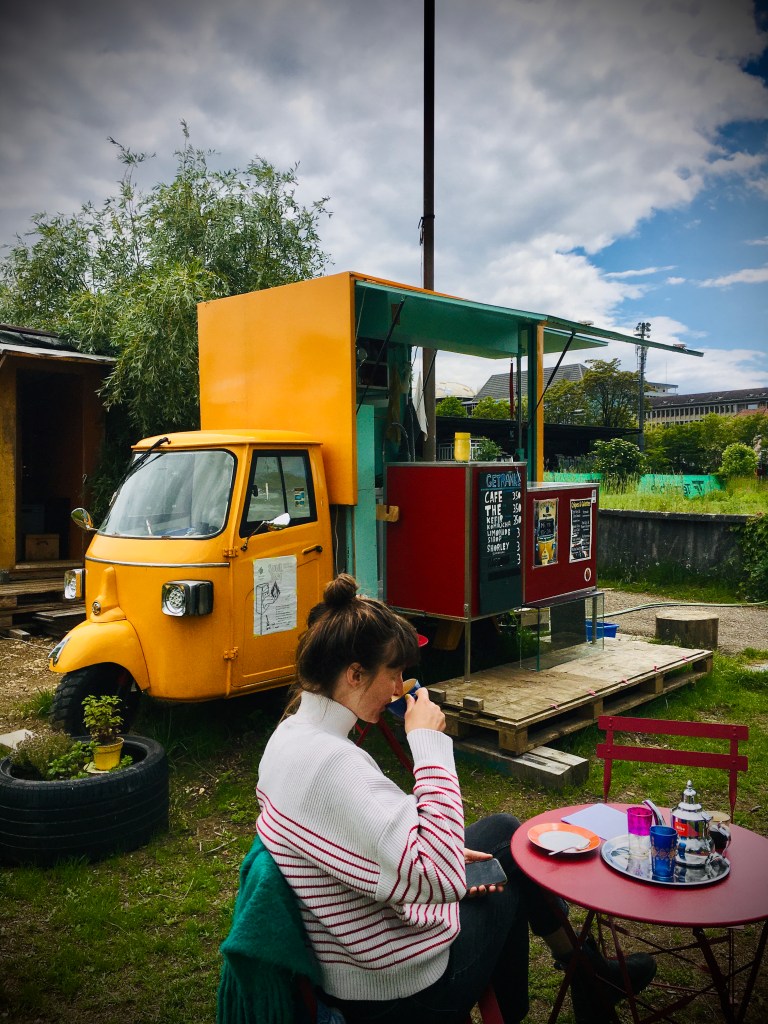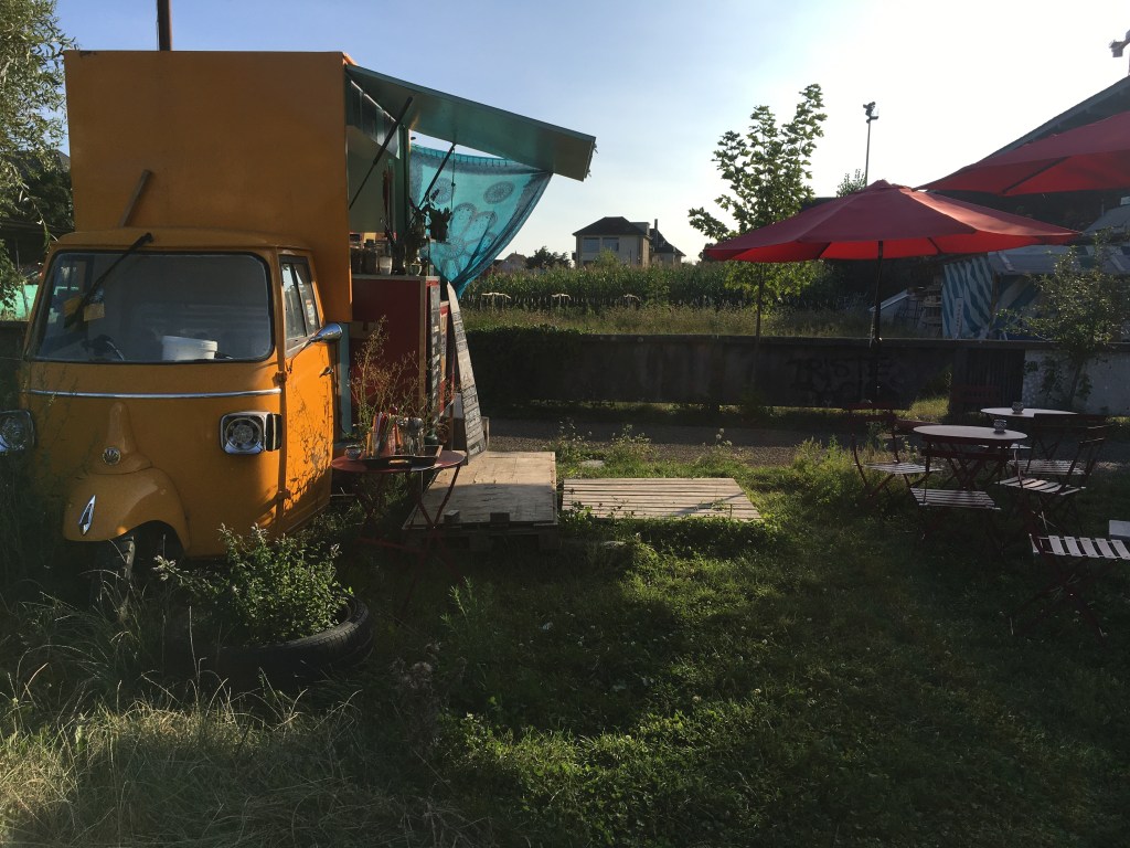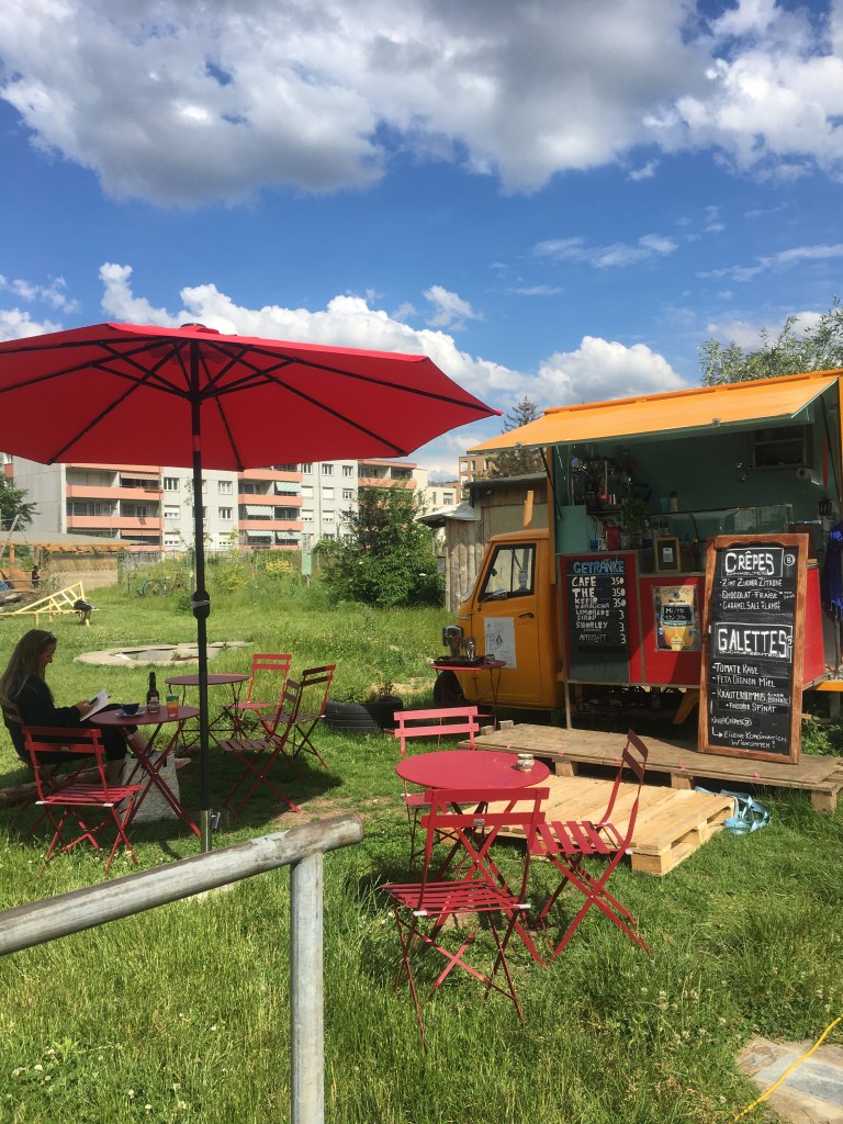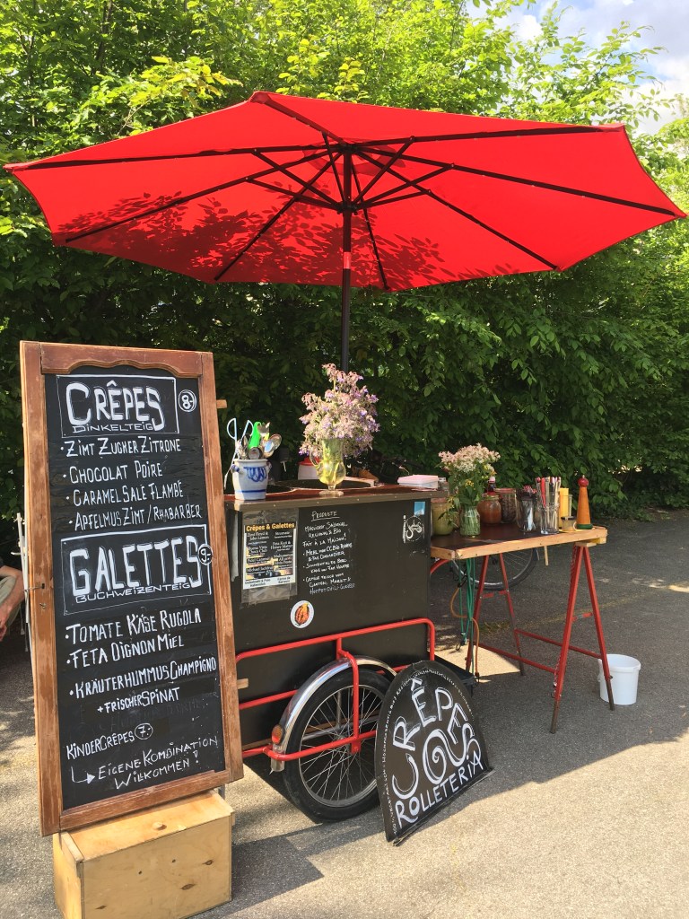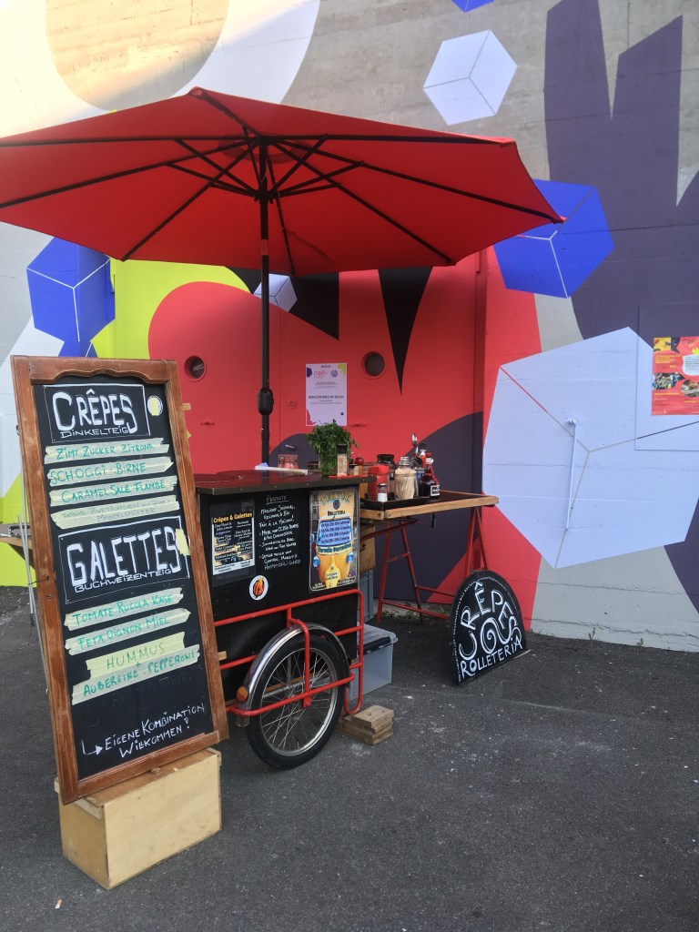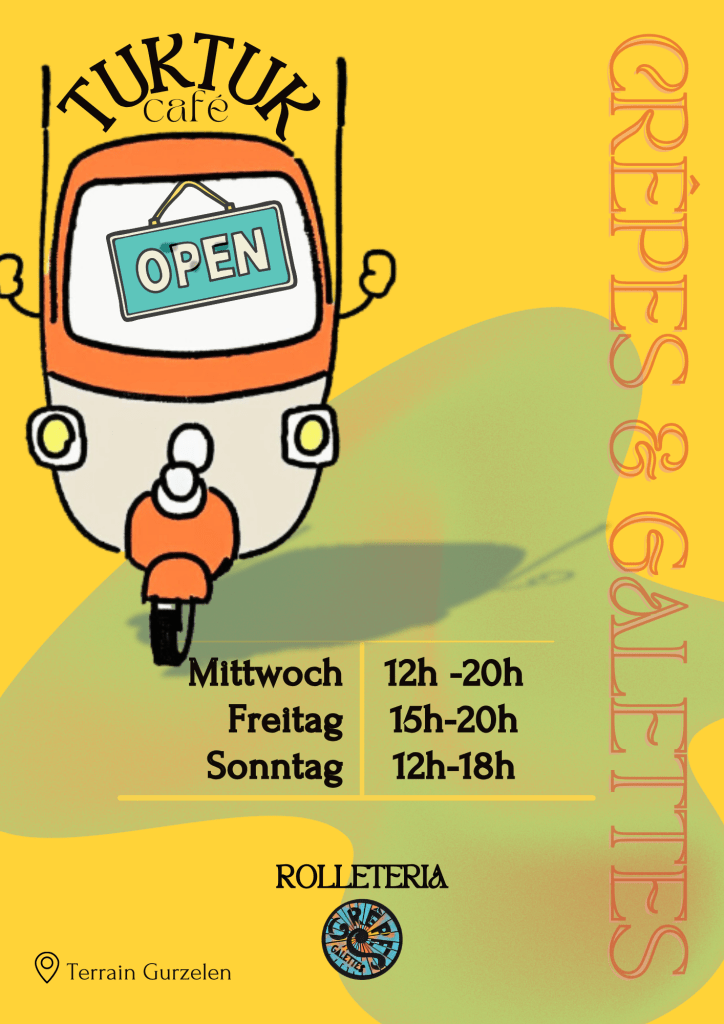 Steht fix neben der Kinderbaustelle auf auf dem Terrain Gurzelen in Biel. Dort Gibt es neben Crêpes & Galettes auch Café und erfrischende Getänke.